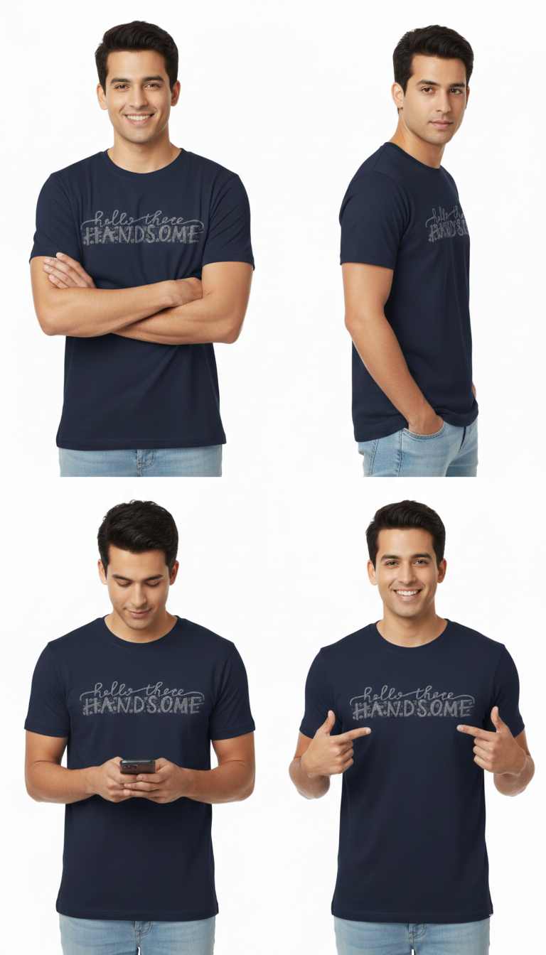 Ye t-shirt unke liye hai jo jaante hain ki unka charm natural hai. Ek sophisticated "Hello There Handsome" graphic ke saath, ye tee aapke wardrobe mein ek instant boost aur playful vibe add karti hai. Anthracite Grey ka deep tone is design ko ek premium aur mature look deta hai.
